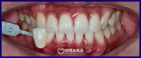 미백 전 치아 색상을 확인하고